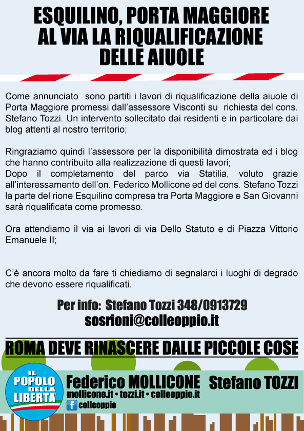 Esquilino - Porta Maggiore, Tozzi (PDL):